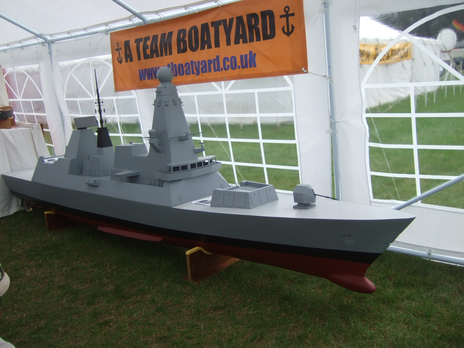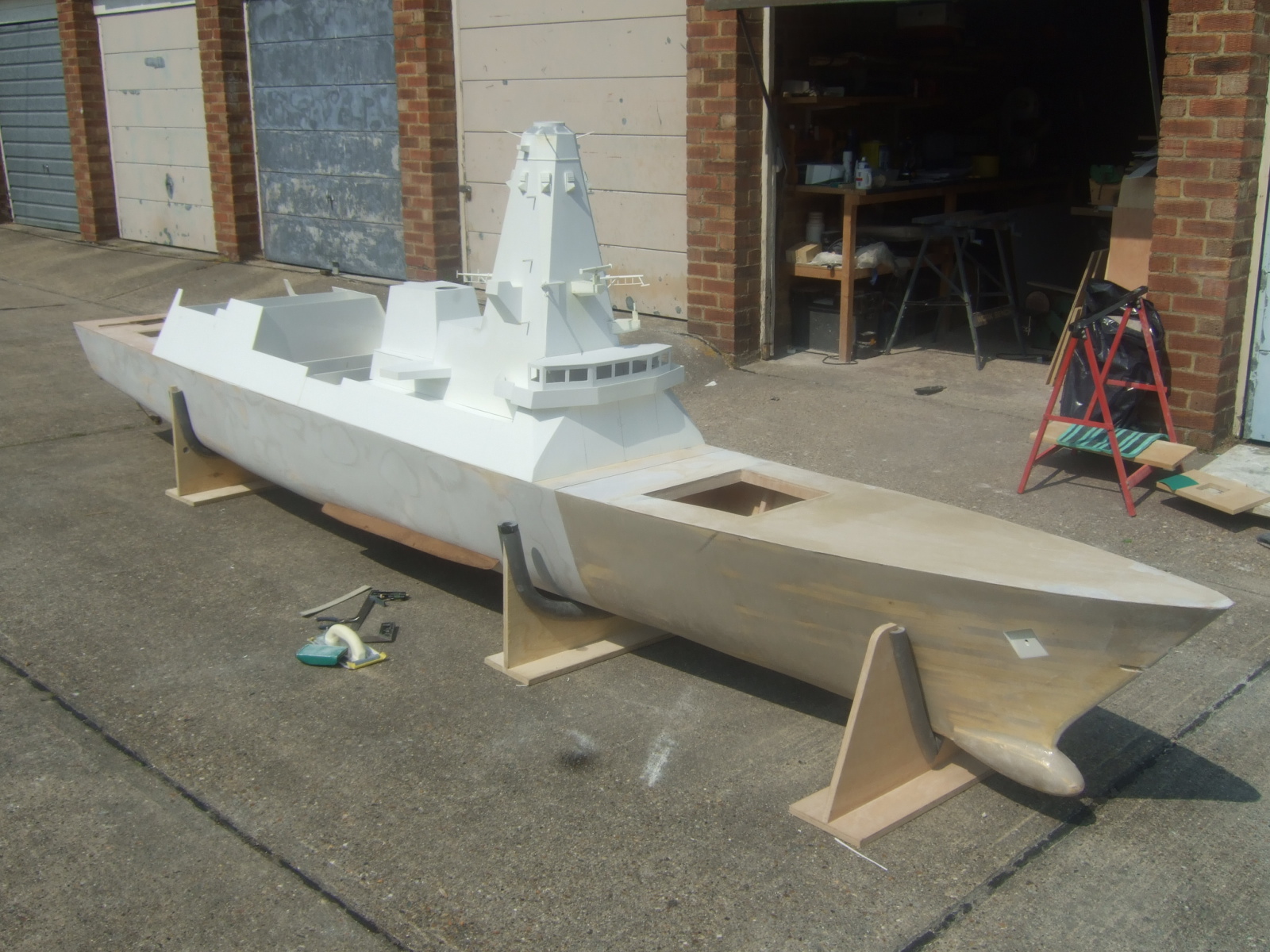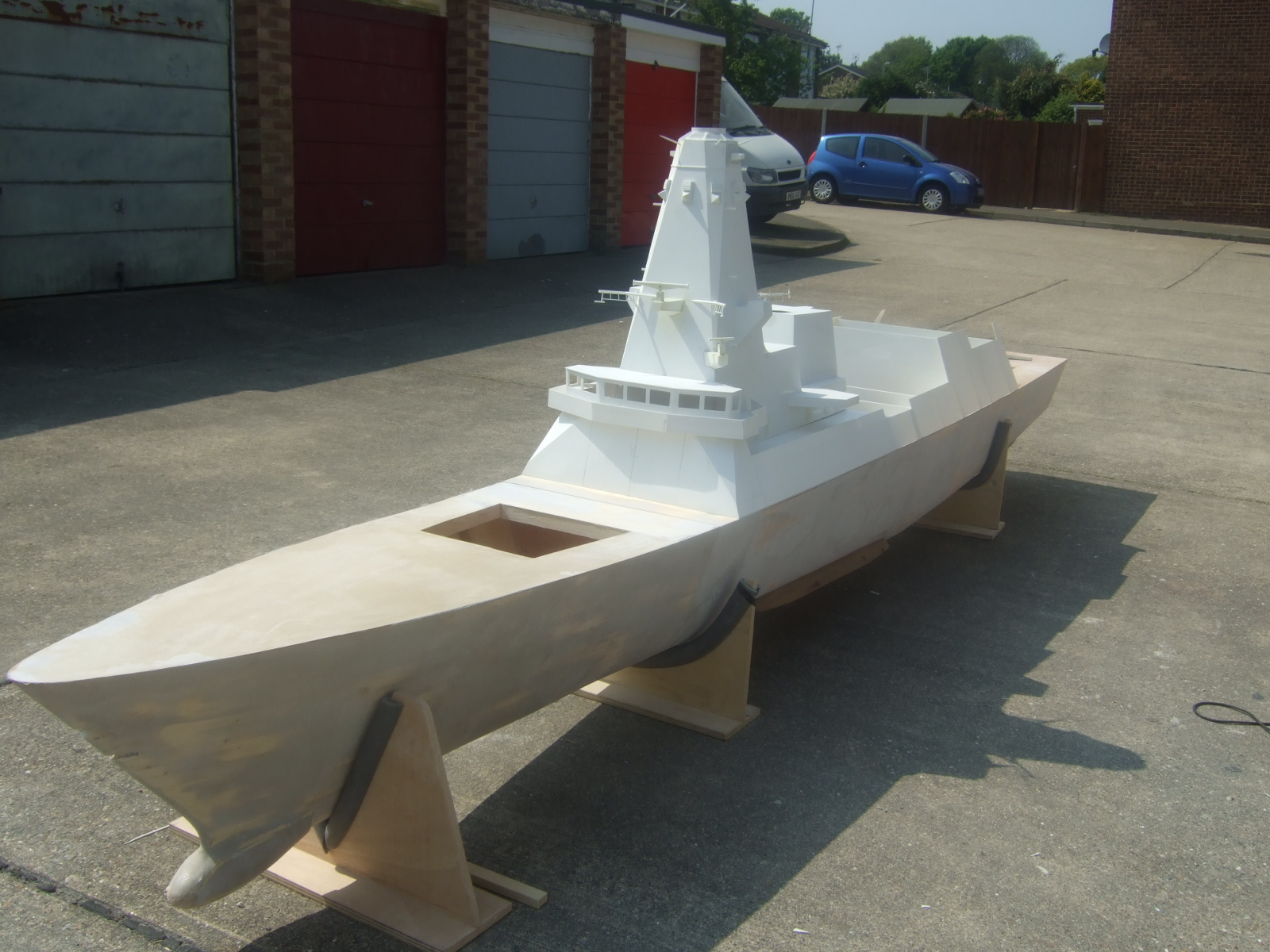 Under the ownership of Alan Noble and the Ateamboatyard she attended many shows over a four or five year period then was sold on to new ownership. In 2019 we acquired her back and i have decided to give her a refit and add some much needed detail. She is currently with Matt Beck of Becks Model Marine a good friend who is fibreglassing the hull to ensure it's ongoing watertightness then a coat of paint. Next will be to add some details. The bridge is being rebuilt as the original was wrong and will include a video camera. Matt is currently 3d printing a 4.5 inch turret, two phalanx's and two ds30 cannon plus hopefully the miniguns. I have a kit of Lynx helicopter in the correct scale waiting for assembly and now have a 1/32 scale merlin eh101 that was printed for me by the lovely "dorsetprintman" which will soon be motorized and have full lighting system.