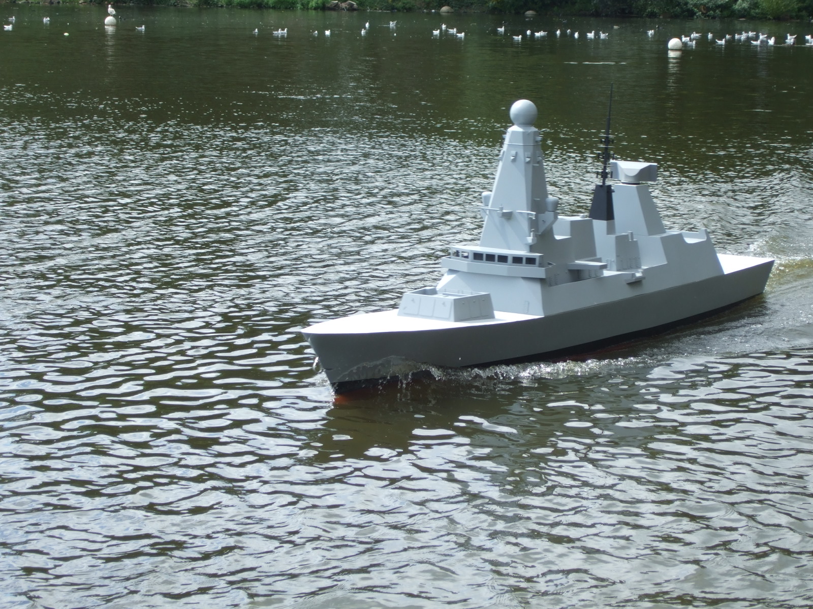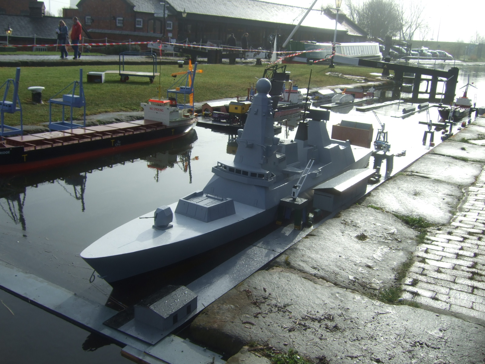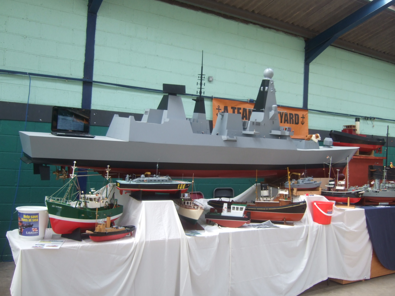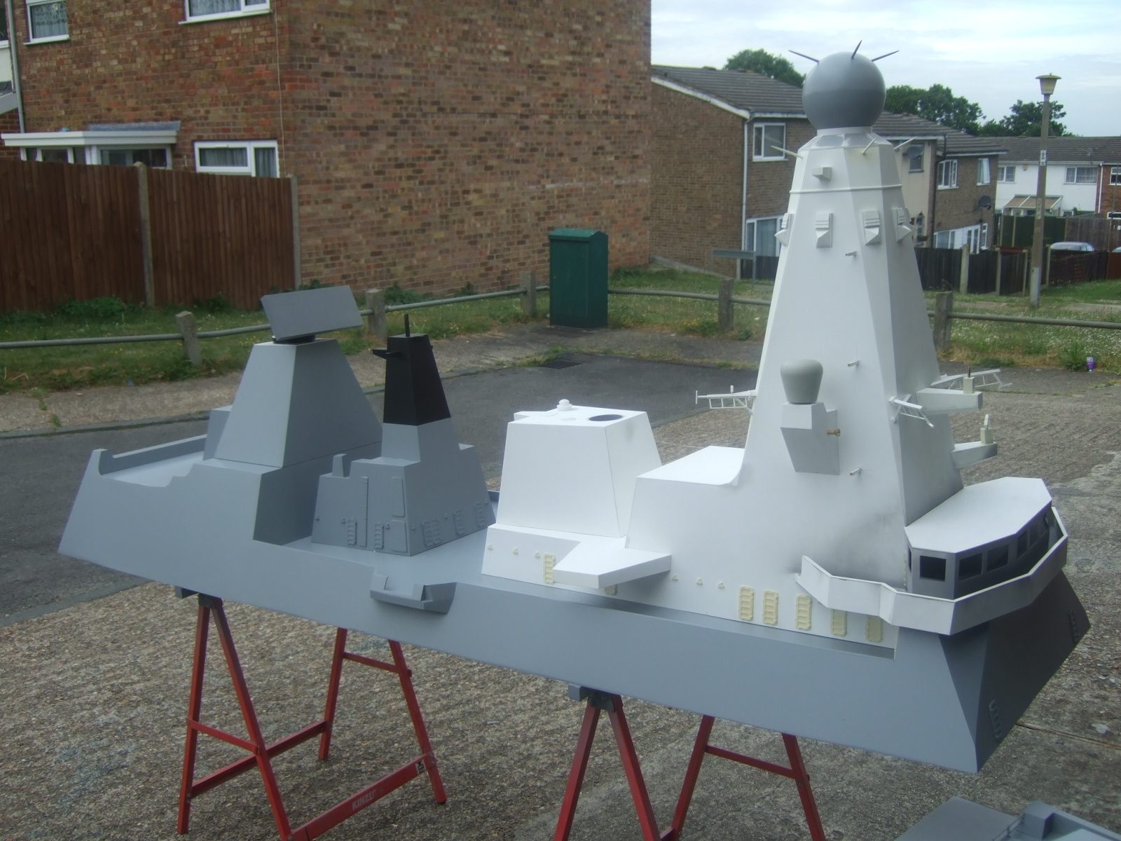 Under the ownership of Alan Noble and the Ateamboatyard she attended many shows over a four or five year period then was sold on to new ownership. In 2019 we acquired her back and i have decided to give her a refit and add some much needed detail. She is currently with Matt Beck of Becks Model Marine a good friend who is fibreglassing the hull to ensure it's ongoing watertightness then a coat of paint. Next will be to add some details. The bridge is being rebuilt as the original was wrong and will include a video camera. Matt is currently 3d printing a 4.5 inch turret, two phalanx's and two ds30 cannon plus hopefully the miniguns. I have a kit of Lynx helicopter in the correct scale waiting for assembly and now have a 1/32 scale merlin eh101 that was printed for me by the lovely "dorsetprintman" which will soon be motorized and have full lighting system.