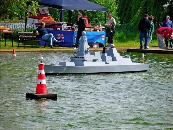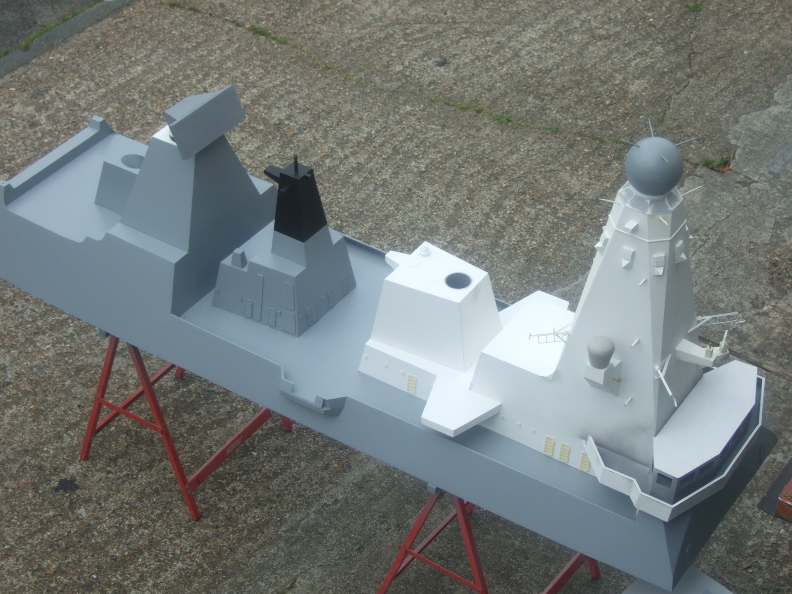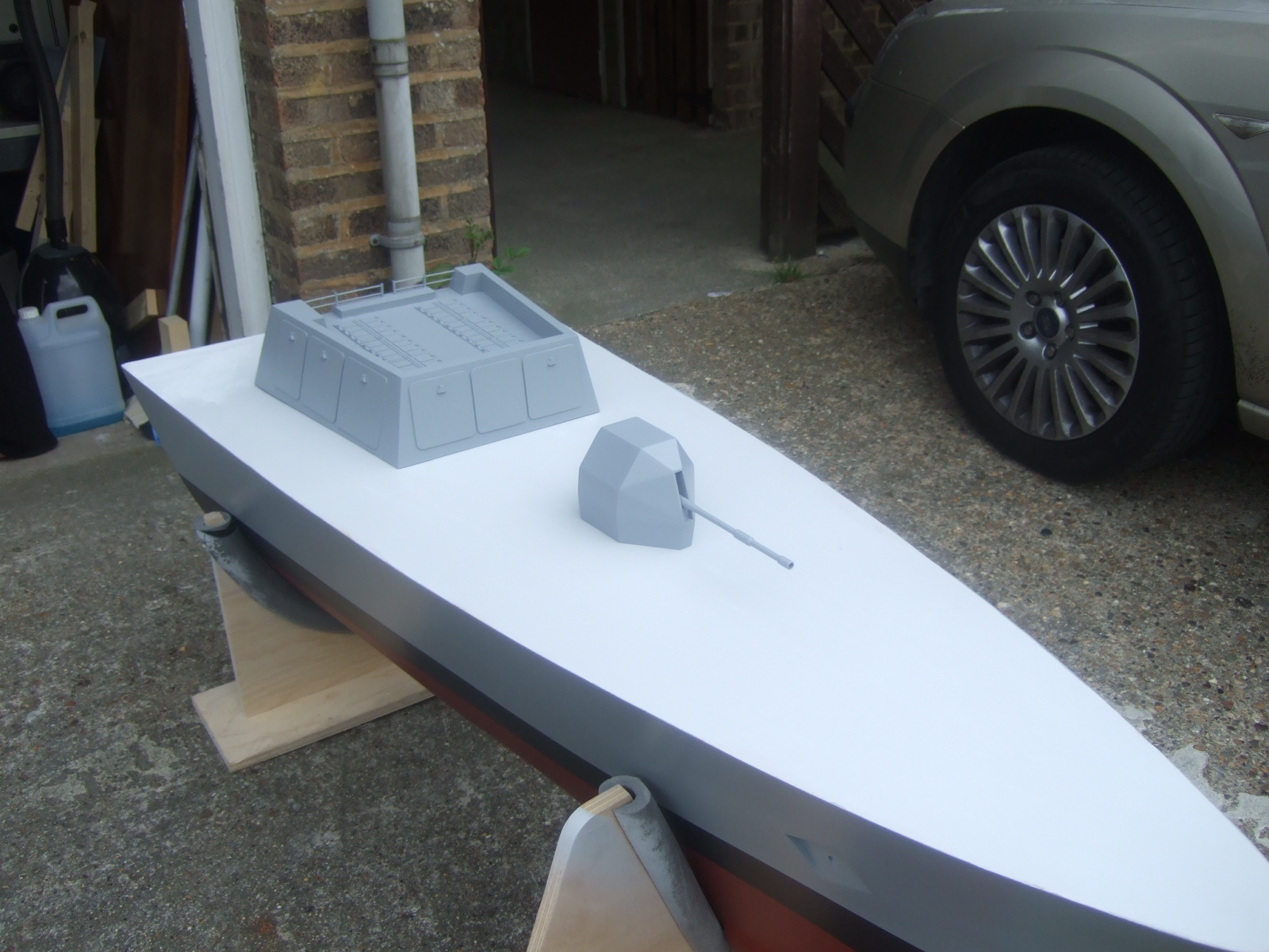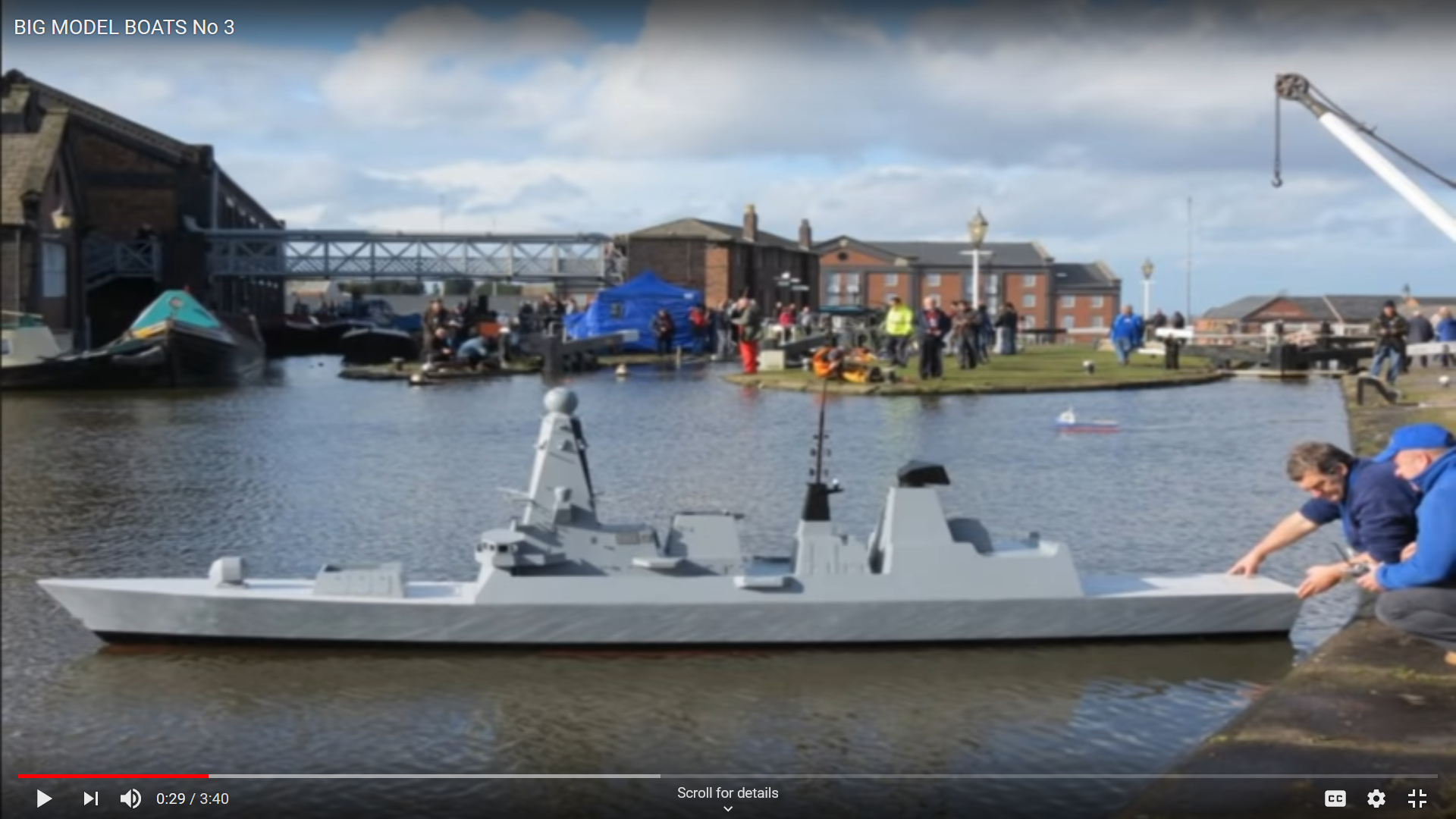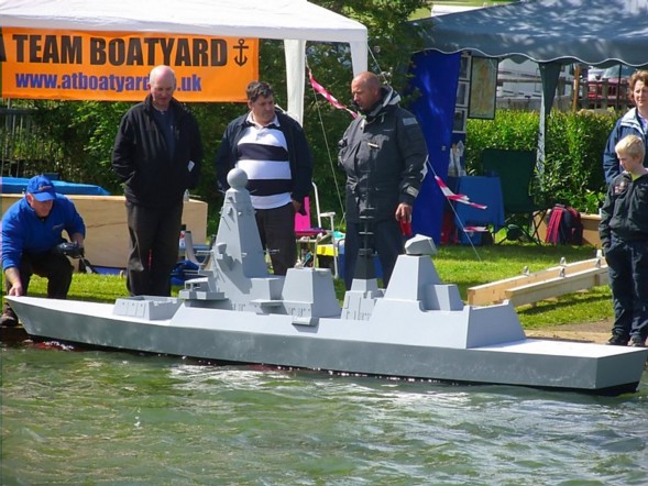 Under the ownership of Alan Noble and the Ateamboatyard she attended many shows over a four or five year period then was sold on to new ownership. In 2019 we acquired her back and i have decided to give her a refit and add some much needed detail. She is currently with Matt Beck of Becks Model Marine a good friend who is fibreglassing the hull to ensure it's ongoing watertightness then a coat of paint. Next will be to add some details. The bridge is being rebuilt as the original was wrong and will include a video camera. Matt is currently 3d printing a 4.5 inch turret, two phalanx's and two ds30 cannon plus hopefully the miniguns. I have a kit of Lynx helicopter in the correct scale waiting for assembly and now have a 1/32 scale merlin eh101 that was printed for me by the lovely "dorsetprintman" which will soon be motorized and have full lighting system.