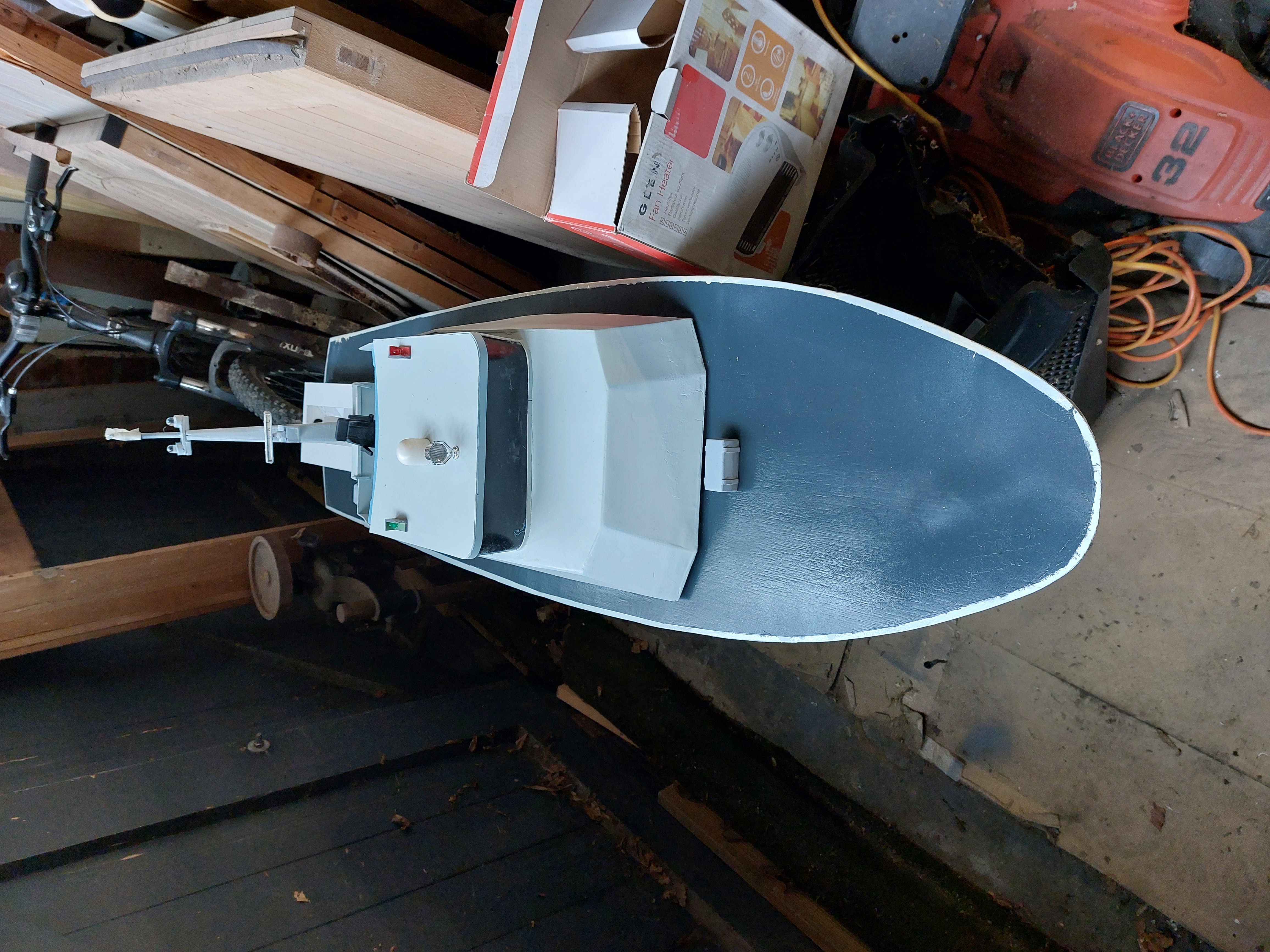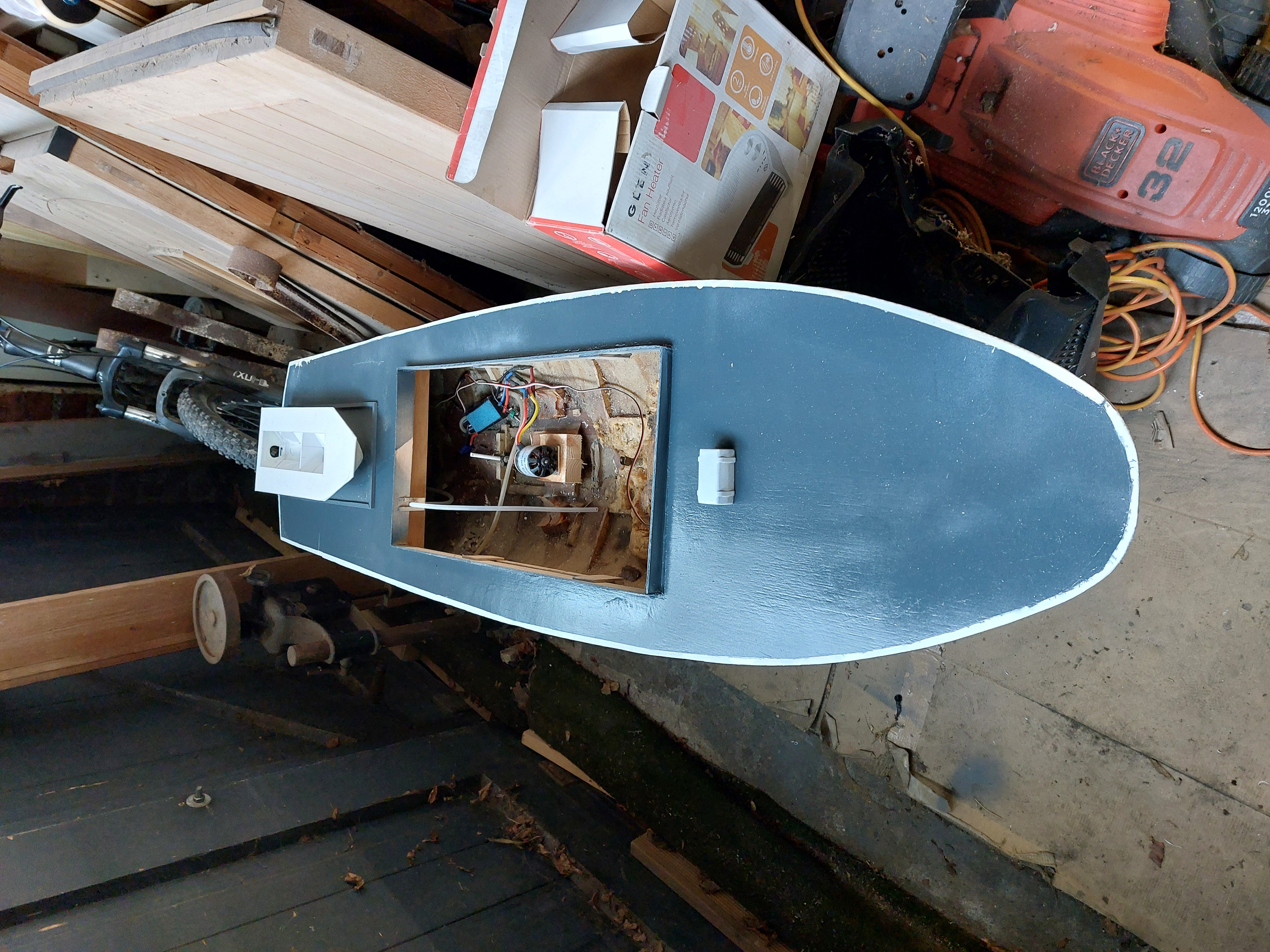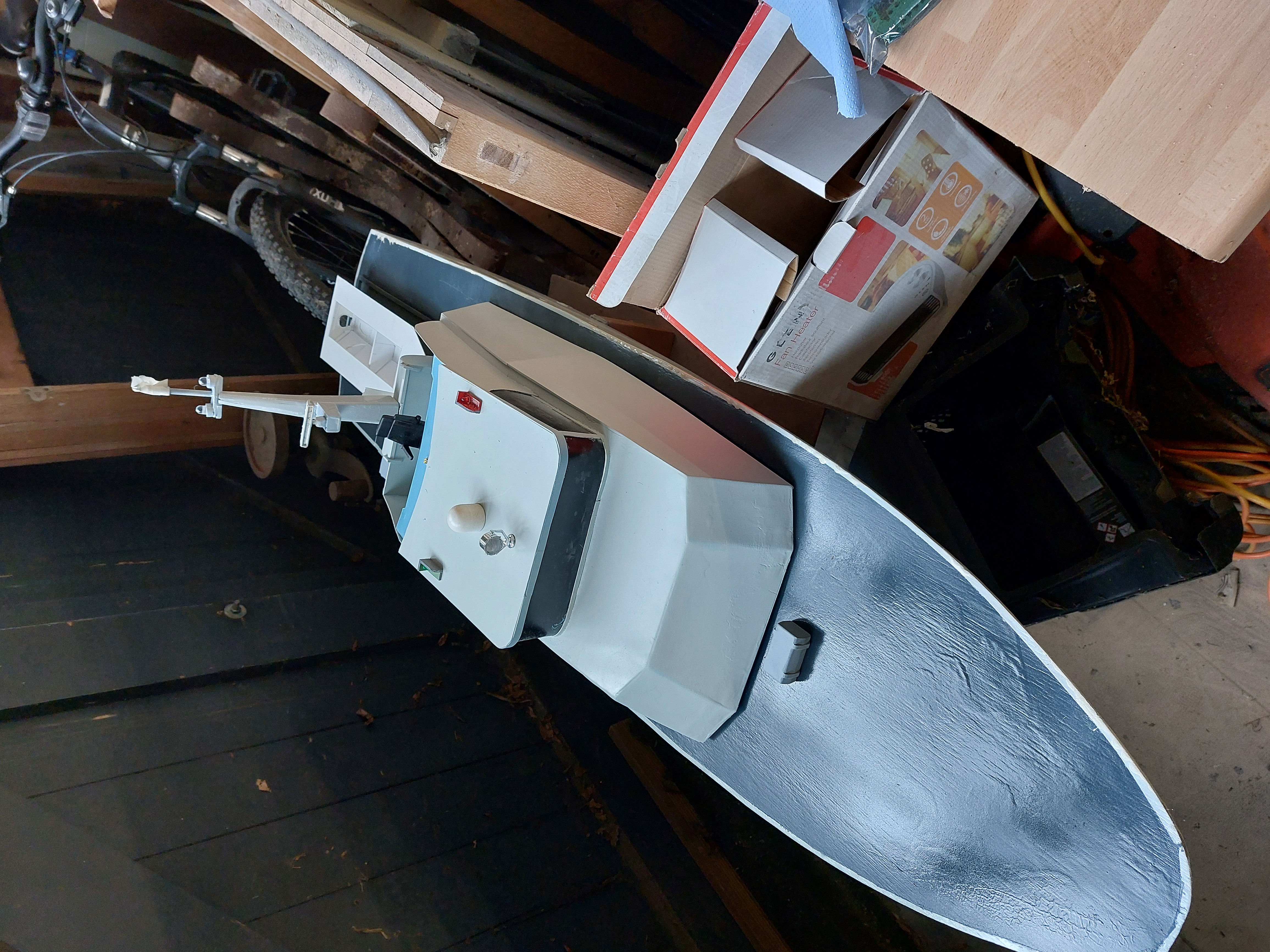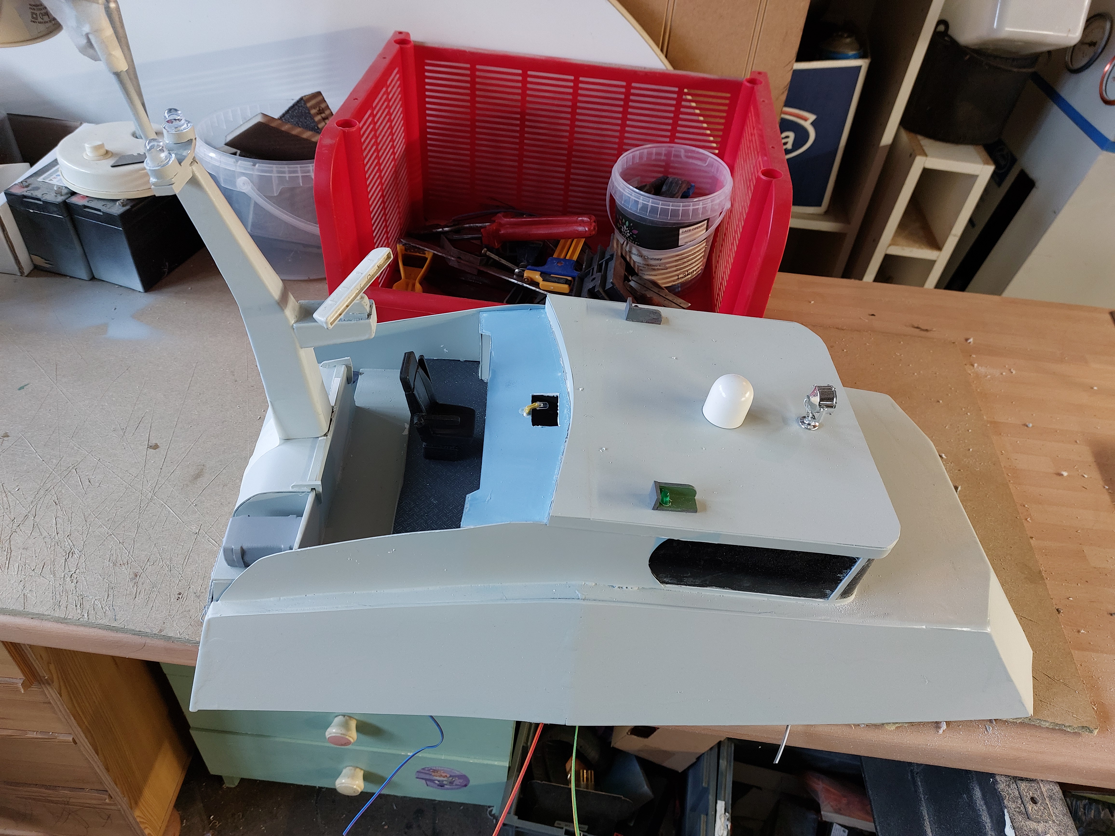 This is the full size vessel mine i am going to modify with a ramp launched patrol boat on the stern. Have now got to the stage where the bridge is almost done, deck painted and painting hull. Made the 30mm cannon on the bow and have bought two machine guns for the bridge and a minigun for the rib. You can see from the photos that the mini boat is built now having it's waterjet fitted. The superstructure is about 80 percent there with full working lights, working radar, a rear facing flood light and blue lights and a siren. I have also received a Linear Actuator for the rib rear door. Latest progress report. Superstructure now about 90% done and work progressing well on the launching ramp. A few photos of progress so far follow.