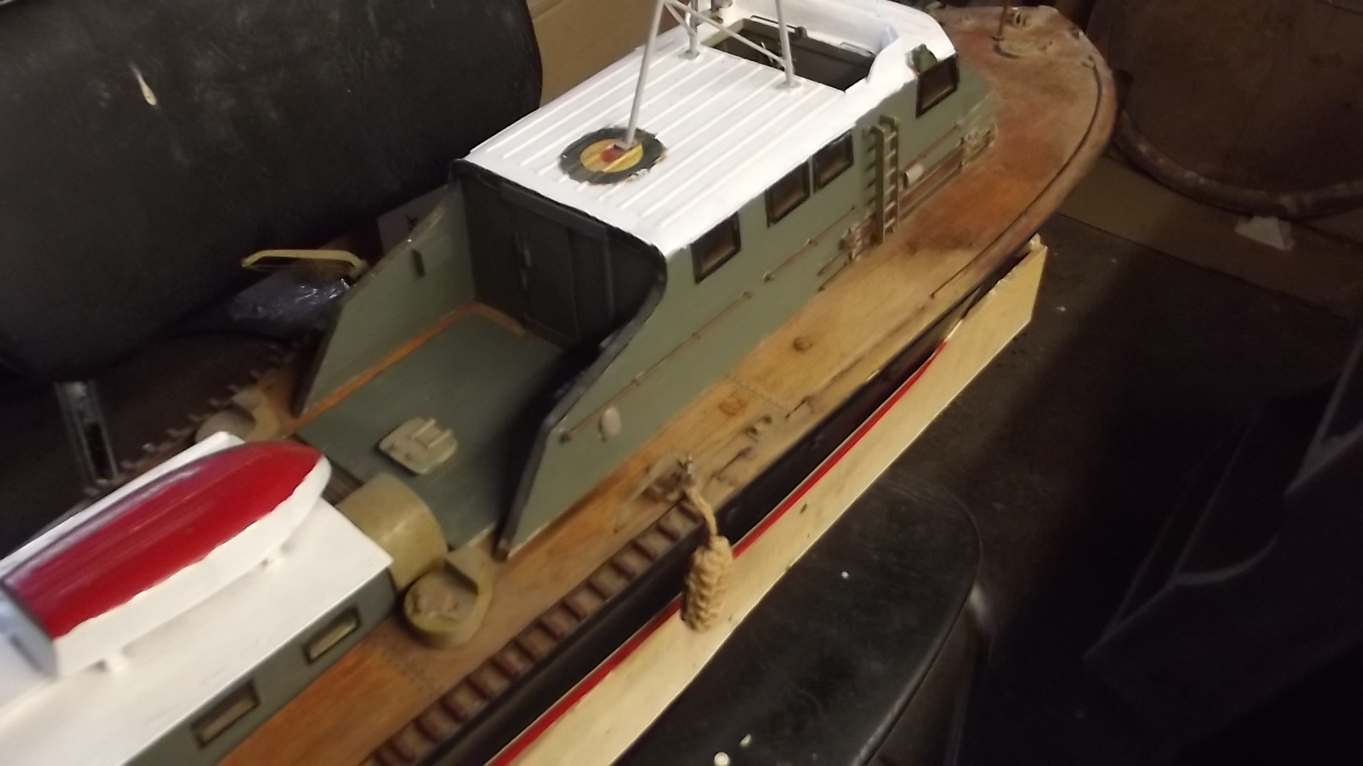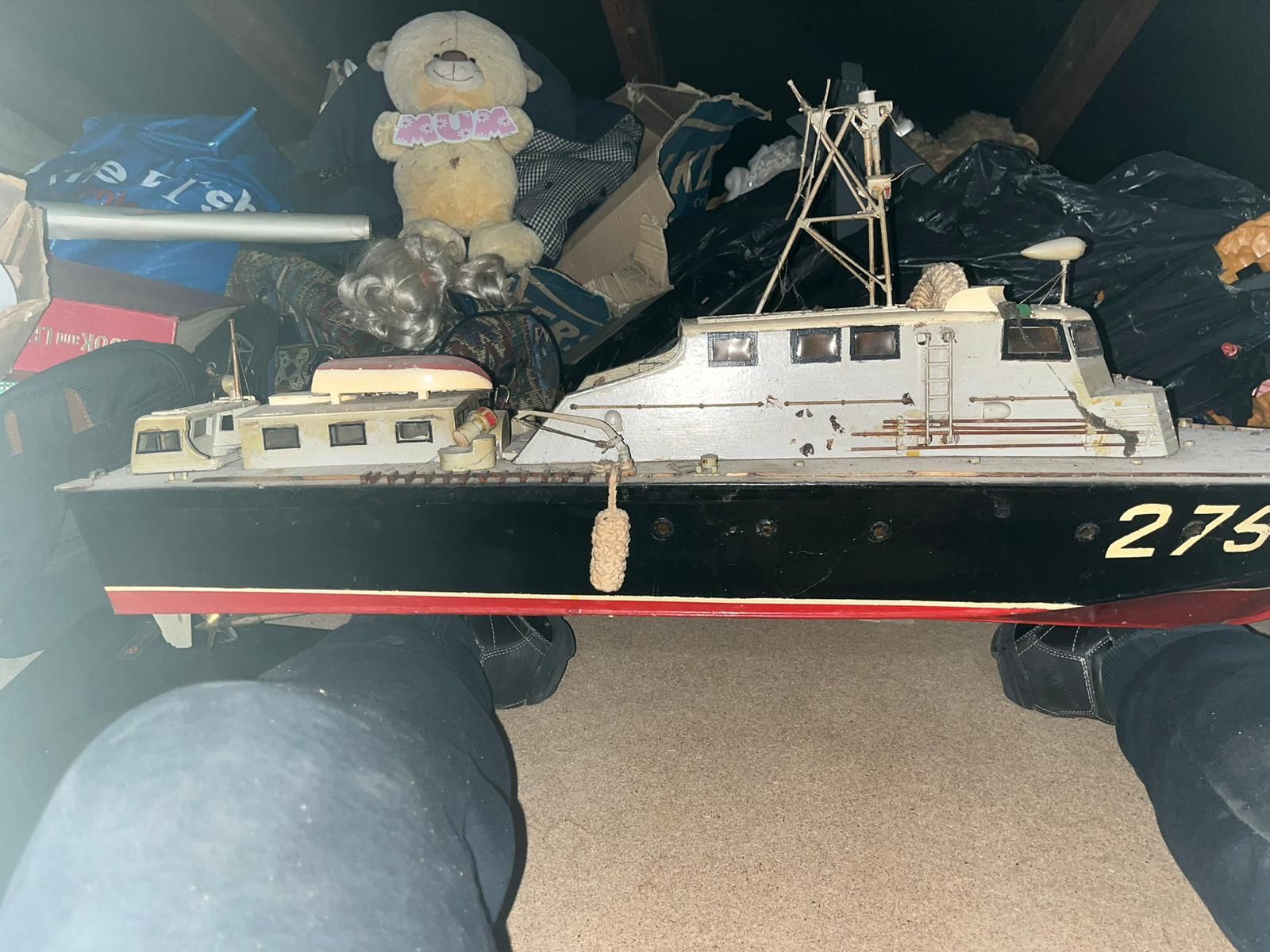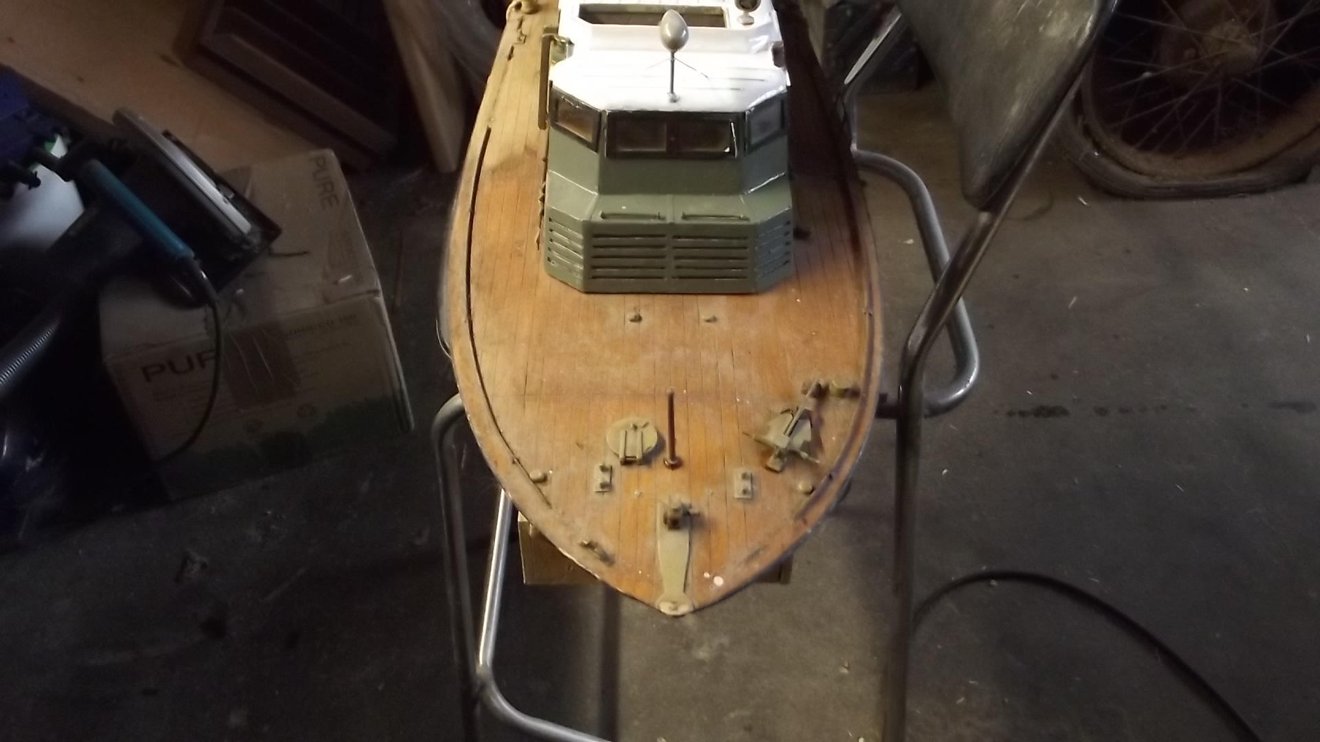 a while ago i recieved a phone call from my daughter saying that one of her work colleages had a model boat in the loft they did not want. A couple of months later and daughter is driving down to visit with the boat in the car.