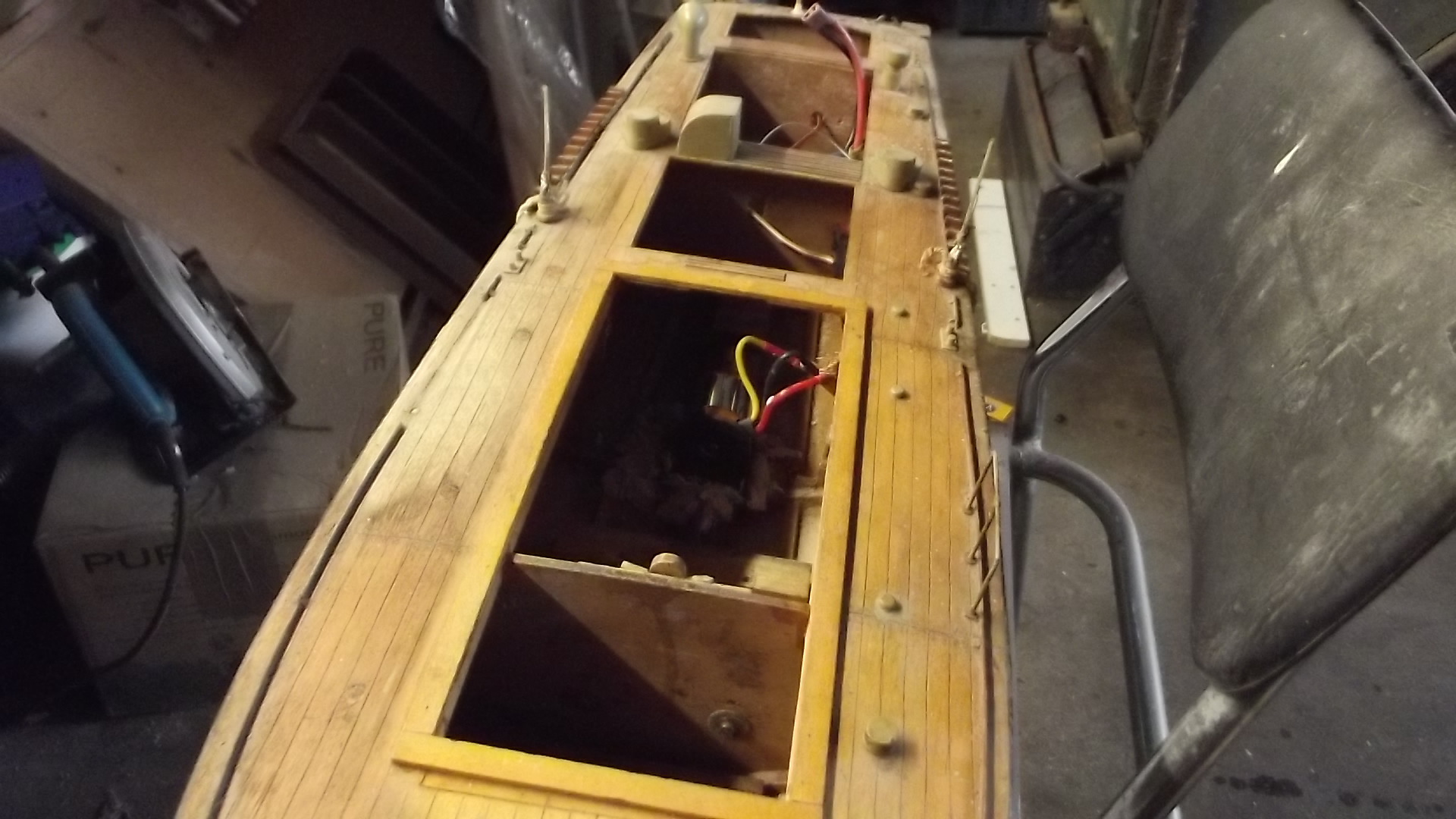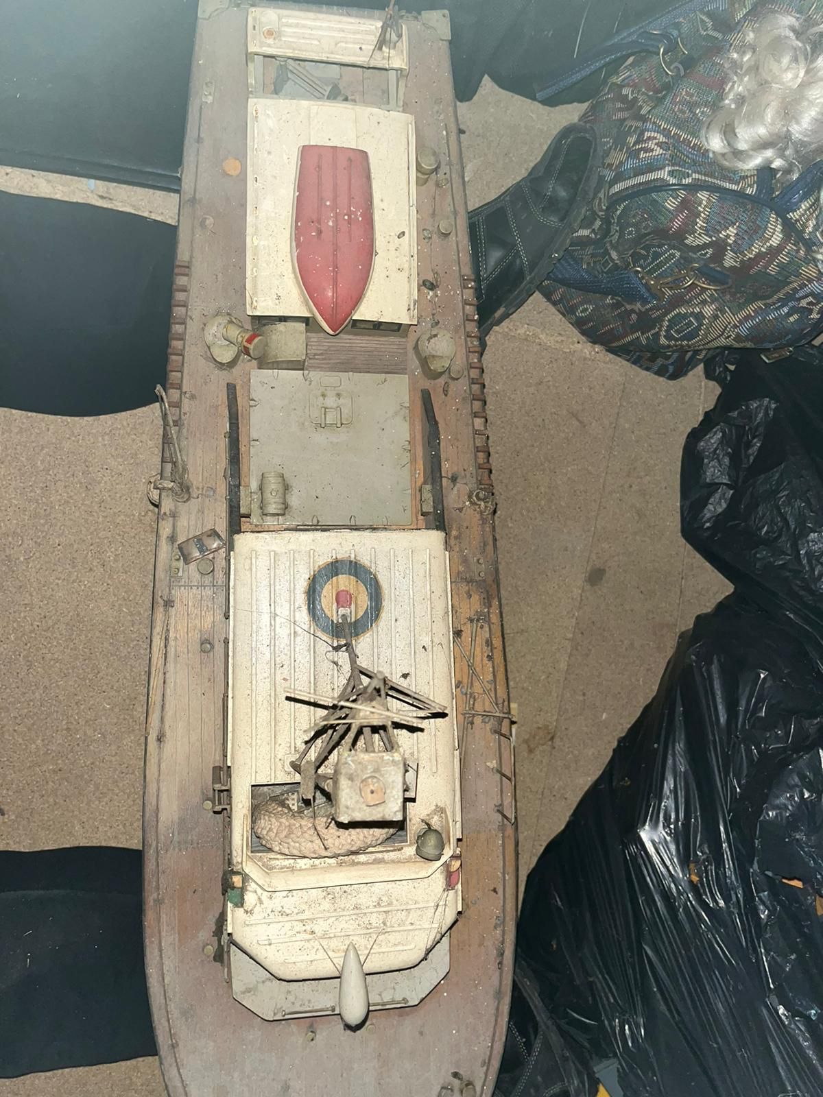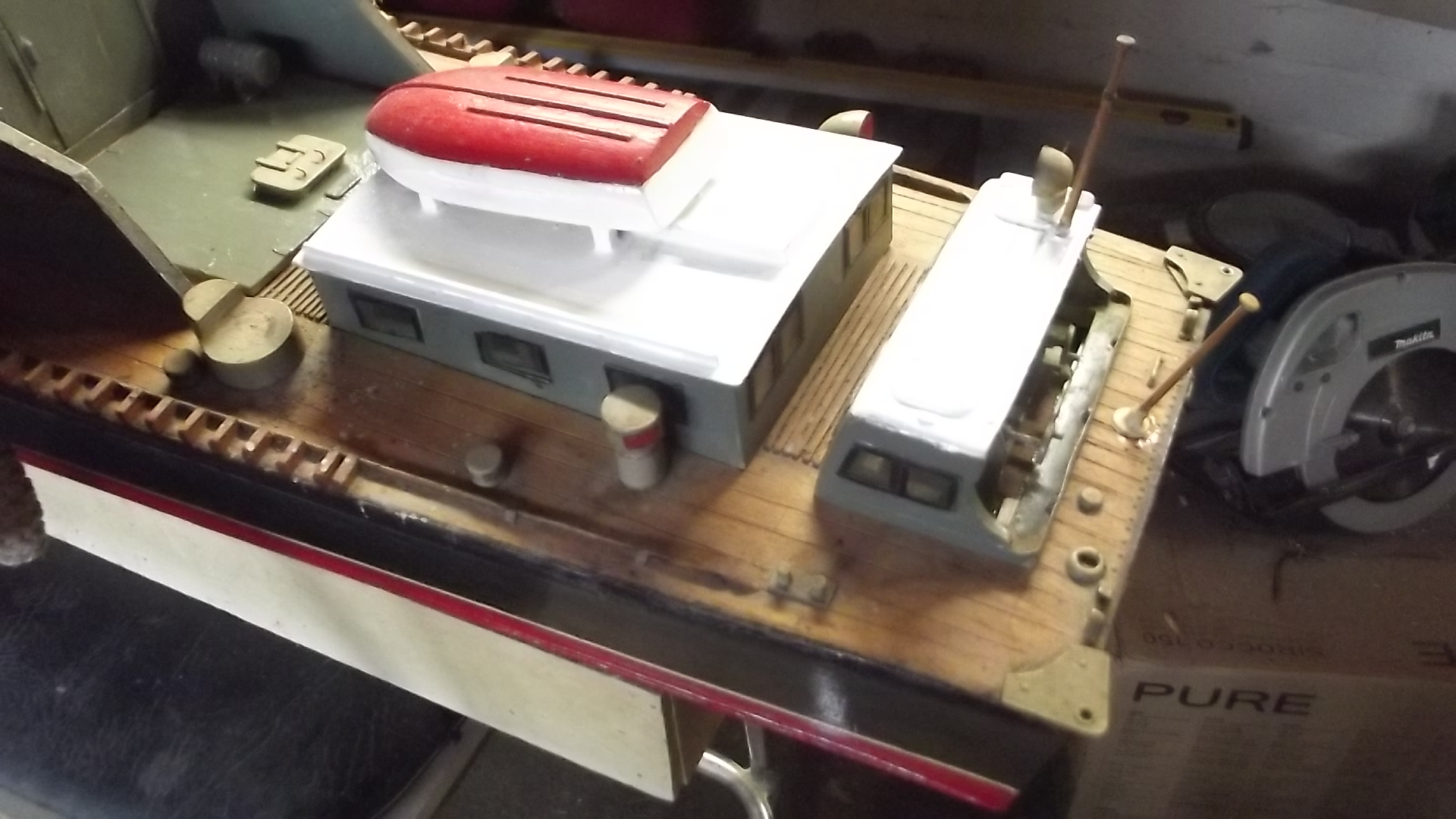 a while ago i recieved a phone call from my daughter saying that one of her work colleages had a model boat in the loft they did not want. A couple of months later and daughter is driving down to visit with the boat in the car.